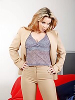 Desirable cougar in glasses strips off her office attire and...